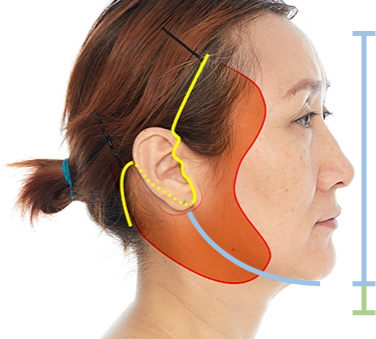 實際手術切口長短及位置將視每位個案的皮膚下垂狀況而定。 如同時需要頸部拉提手術,切口則需要沿著髮際線延伸至耳背。