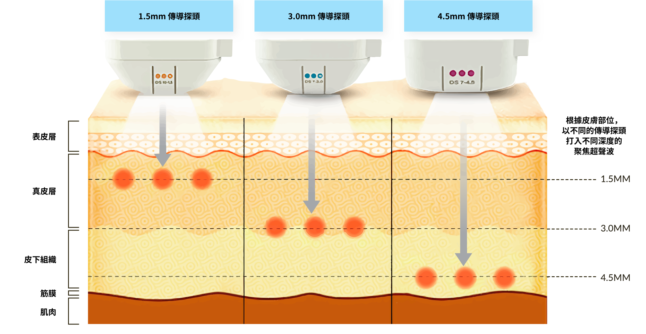 針對各種不同的皮膚狀況調整超音波頻率,以達到最好的拉提效果