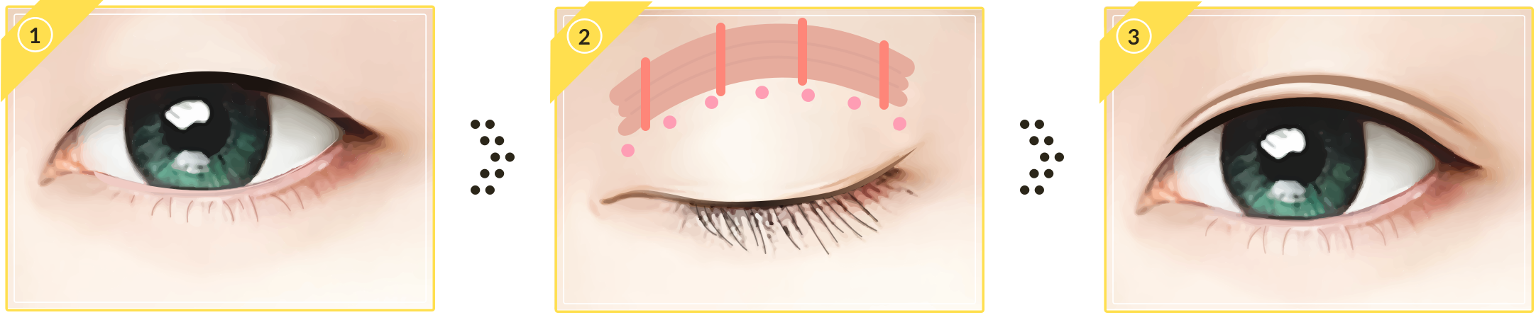 眼肌矫正是一种通过调整瞳孔露出比例,進而改善眼睛垂直长度的手术。通过强化上眼睑肌肉,以往不能完全睁开的眼睛将能够正常地睁开。