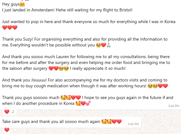 Muchas gracias a todos ❤❤ Espero verlos nuevamente en el futuro cuando haga otro procedimiento en Corea ❤