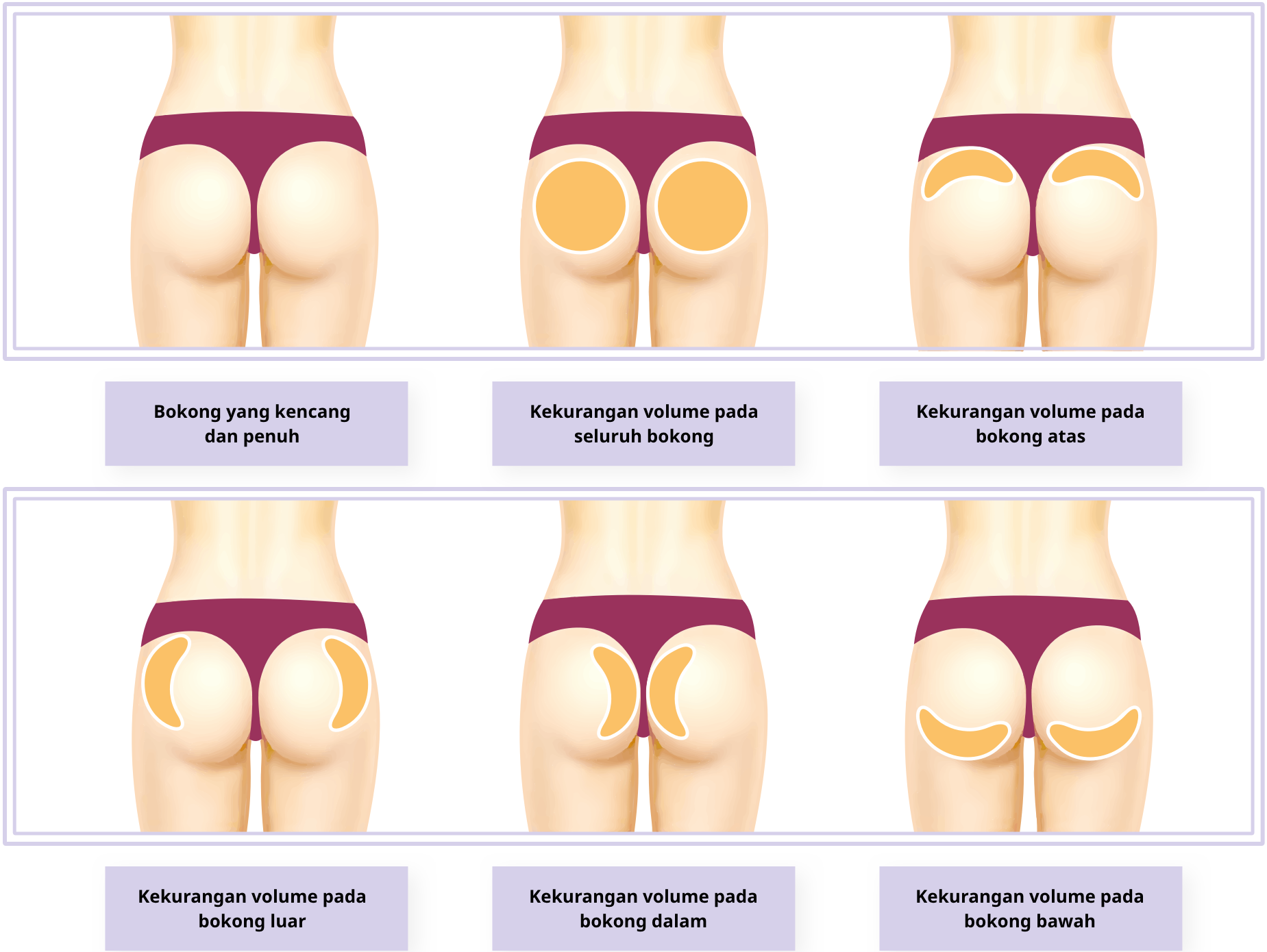 Bokong yang kendur membuat kaki jadi terlihat lebih pendek. Garis pinggul yang indah akan membuat garis kontur tubuh Anda jadi jauh lebih seimbang dan sensual. Volume pinggul adalah salah satu faktor yang penting untuk mendapatkan bentuk tubuh bak gitar spanyol. Tidak hanya untuk memperbaiki garis pinggul, operasi pembesaran bokong juga dapat menciptakan garis tubuh yang sempurna dan proporsional dari semua sudut.