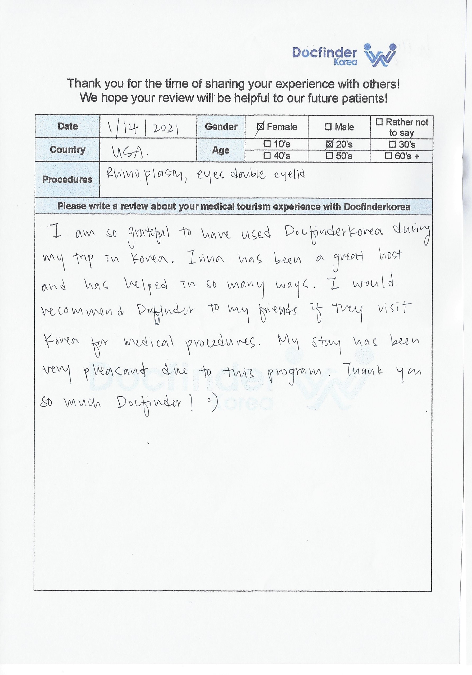 もし自分の友達が医療手術のために韓国へ行く場合には、ドクファインダーコリアをおすすめしたいです。