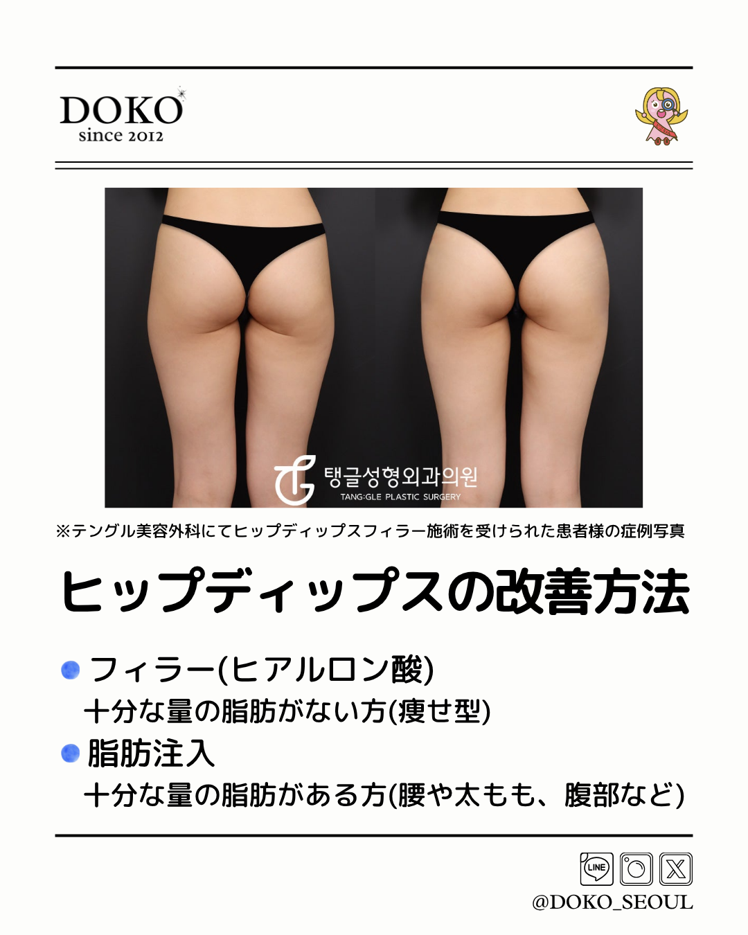 ▲テングル美容外科にてヒップディップスフィラー施術を受けられた患者様の症例写真